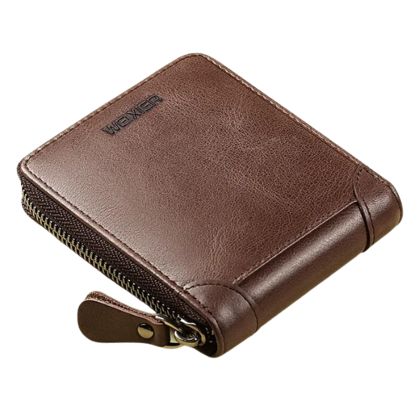 - 1 Carteira de Zíper em Couro - Weixier Premium
