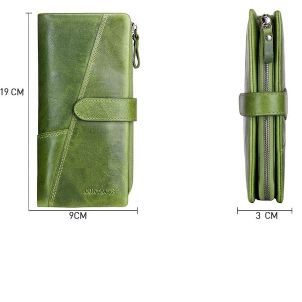 Com a Carteira Feminina Grande, seus objetos estão mais seguros do que nunca. Fecho reforçado, divisórias internas e material resistente garantem que seus pertences estejam protegidos contra perdas e danos. Tudo isso enquanto mantém seu look impecável.