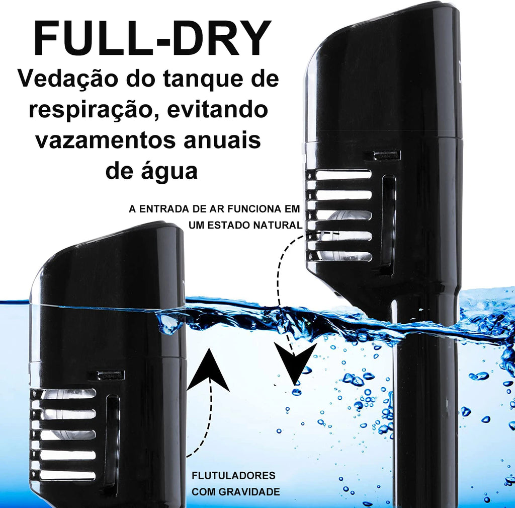 O tubo respiratório vedado e impermeável foi projetado exclusivamente para snorkeling, evitando a entrada de água durante o uso. Isso garante uma respiração tranquila, contínua e segura, eliminando o risco de engasgos e interrupções enquanto você aproveita o mergulho.
