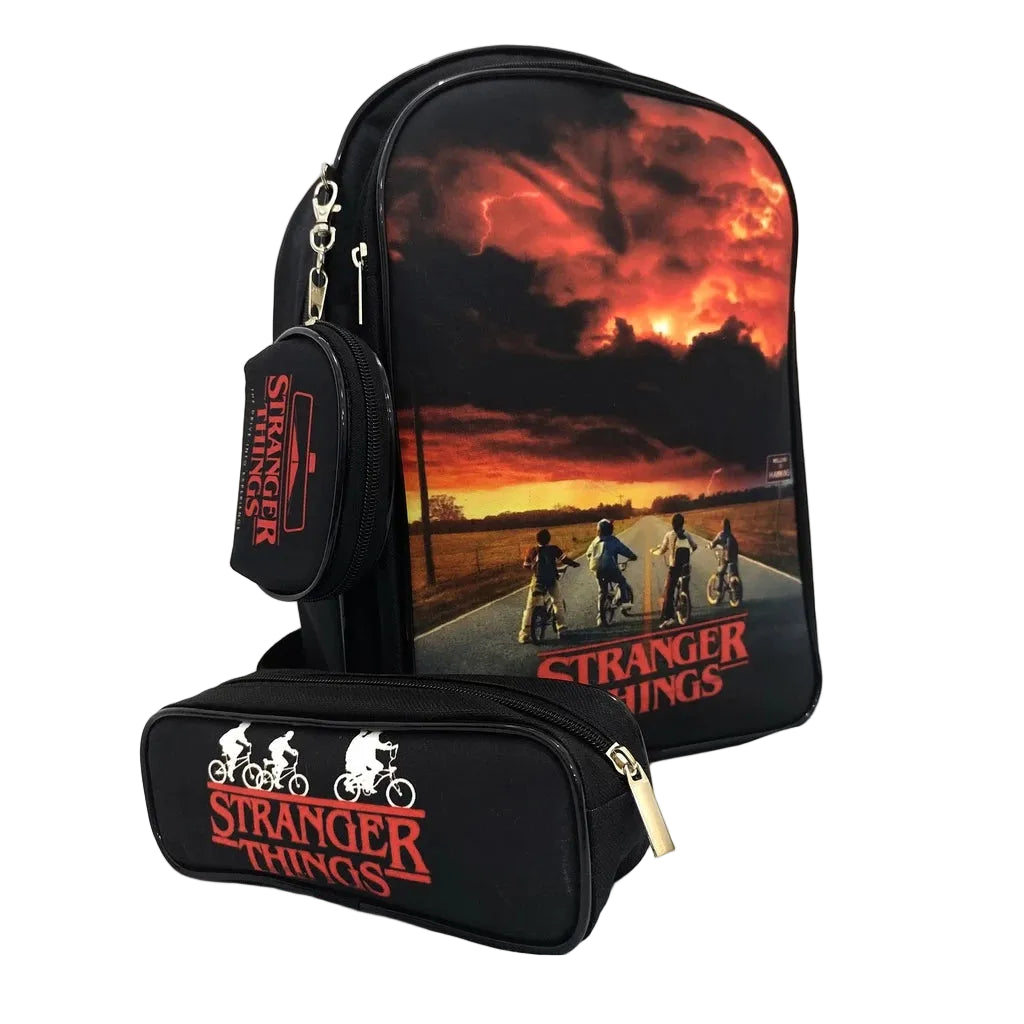 MOCHILA E ESTOJO EM UM KIT COMPLETO PARA OS FÃS DE STRANGER THINGS